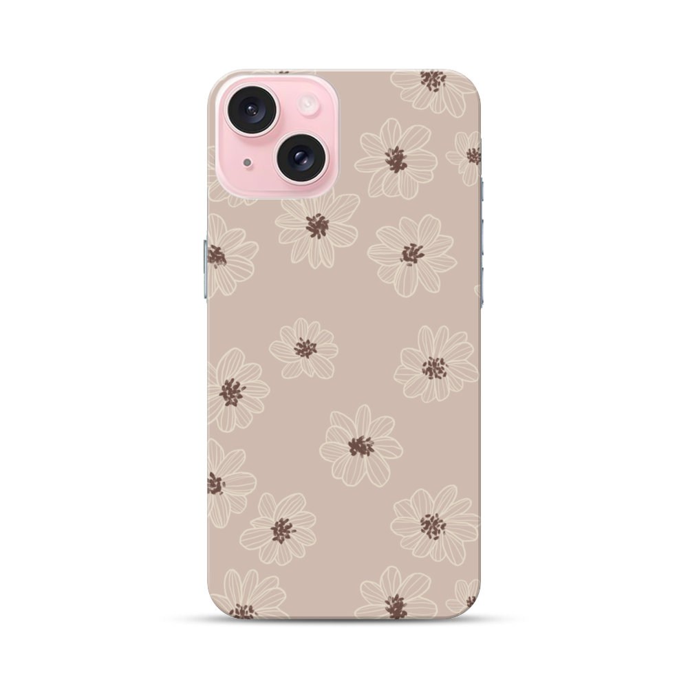 Braun Blüten Muster Apple iPhone 15 Hülle● Rundum bedruckbar