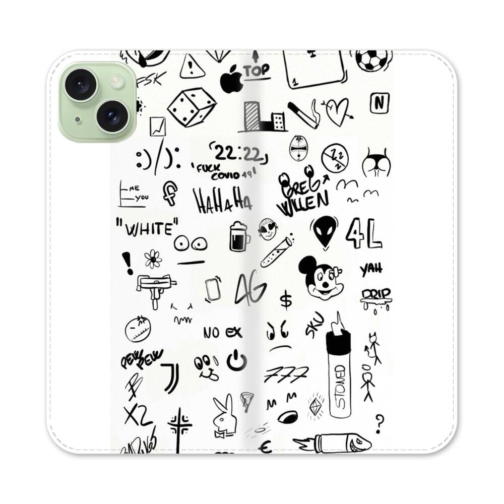 Minimalistische Graffiti Apple iPhone 15 Plus Flip Case● Seitlich klappbar