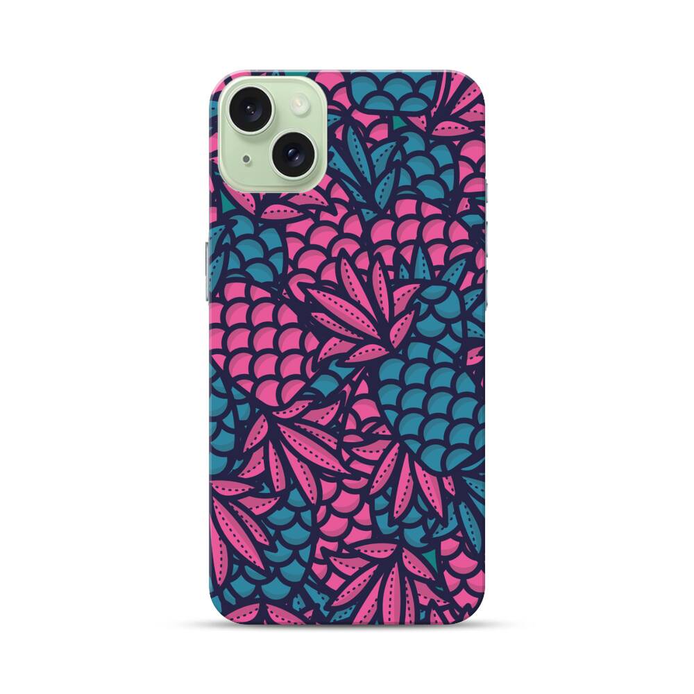 Blau Pink Ananas Apple iPhone 15 Plus Hülle● Rundum bedruckbar
