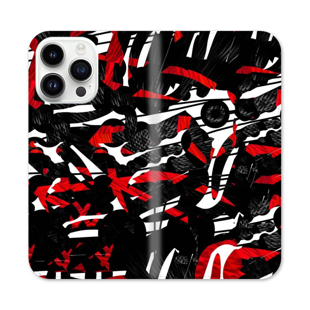 Schwarz Rot Apple iPhone 14 Pro Max Flip Case● Seitlich klappbar