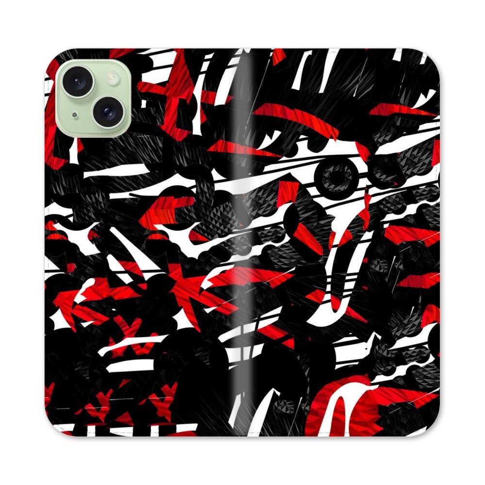 Schwarz Rot Apple iPhone 15 Plus Flip Case● Seitlich klappbar