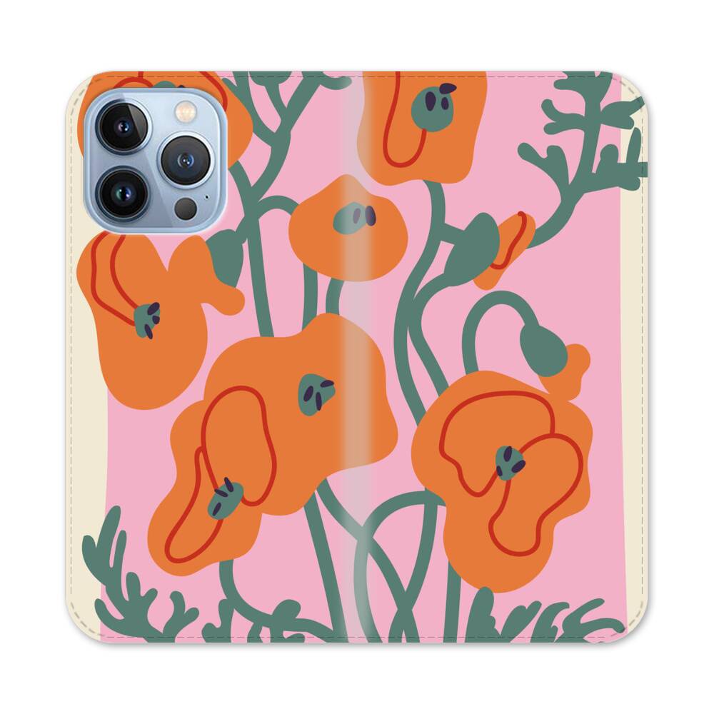 Cartoon Orange Poppy Apple iPhone 13 Pro Flip Case● Seitlich klappbar