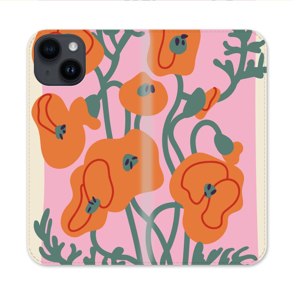 Cartoon Orange Poppy Apple iPhone 14 Flip Case● Seitlich klappbar