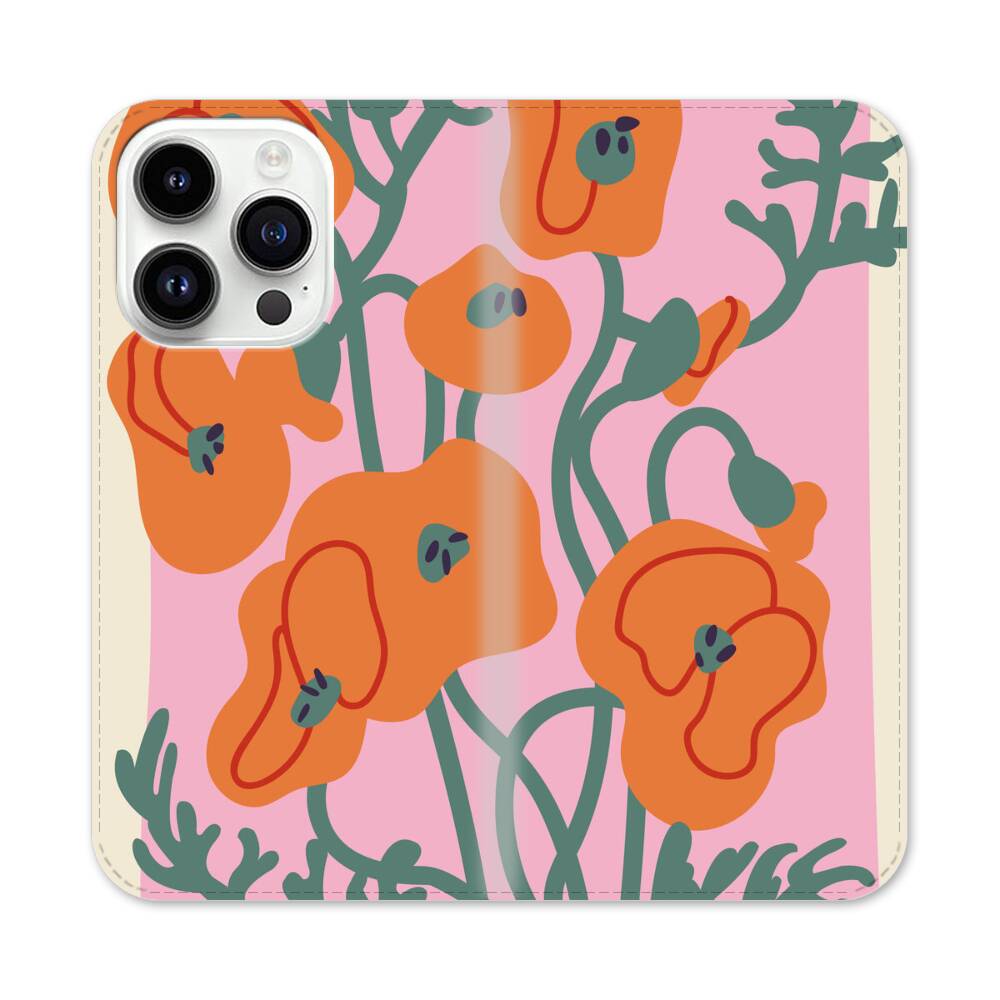 Cartoon Orange Poppy Apple iPhone 14 Pro Flip Case● Seitlich klappbar