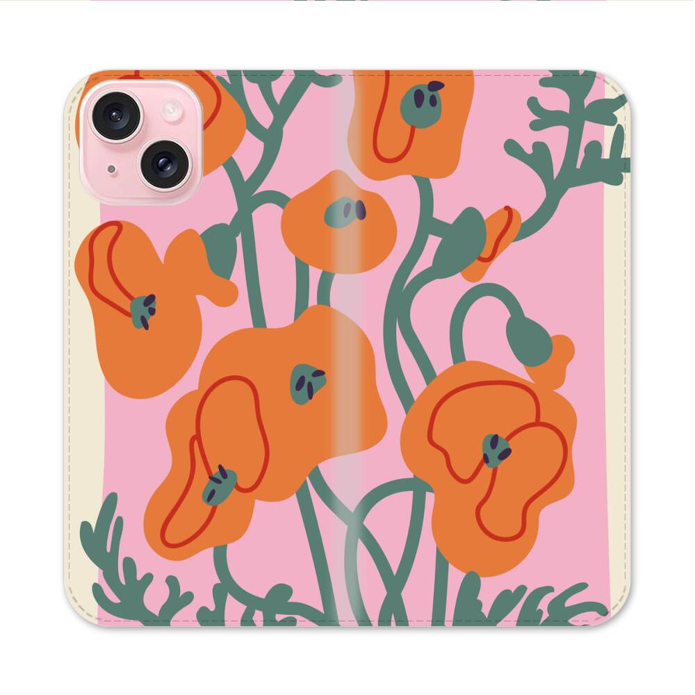 Cartoon Orange Poppy Apple iPhone 15 Flip Case● Seitlich klappbar
