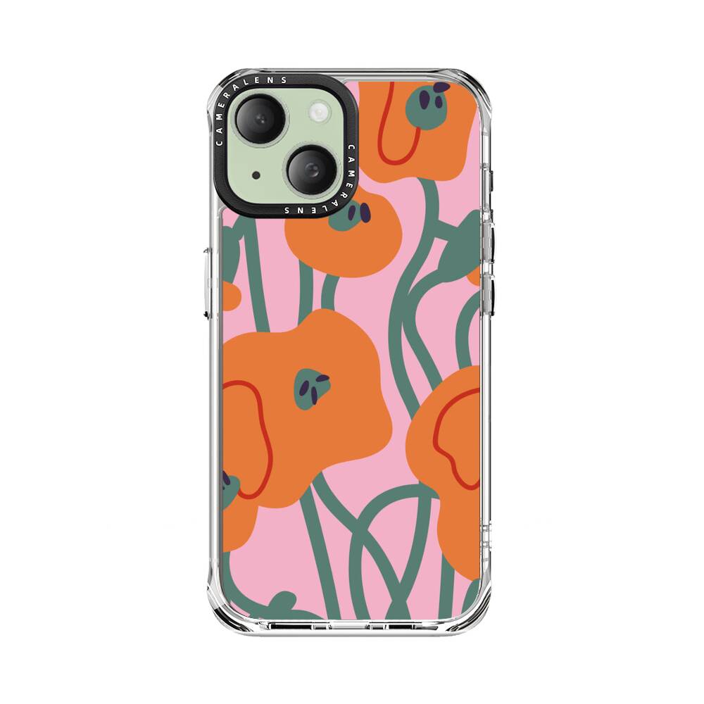 Cartoon Orange Poppy Apple iPhone 15 Plus Silikon Hülle● Sehr robust & langlebig