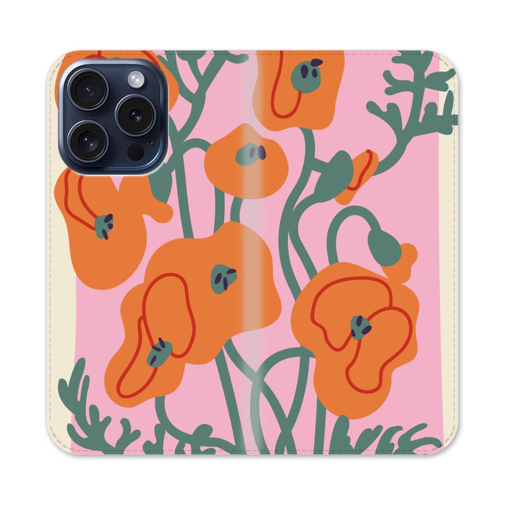 Cartoon Orange Poppy Apple iPhone 15 Pro Flip Case● Seitlich klappbar