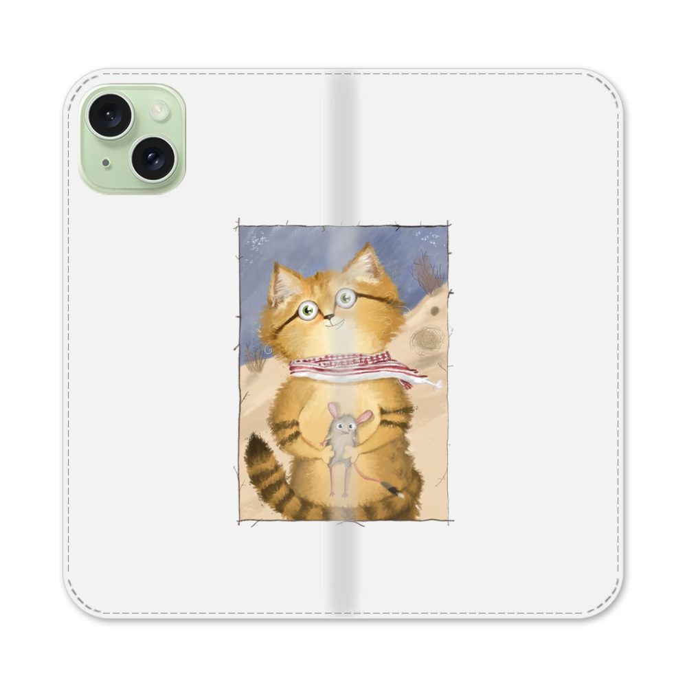 Cartoon Katze und Maus Apple iPhone 15 Plus Flip Case● Seitlich klappbar