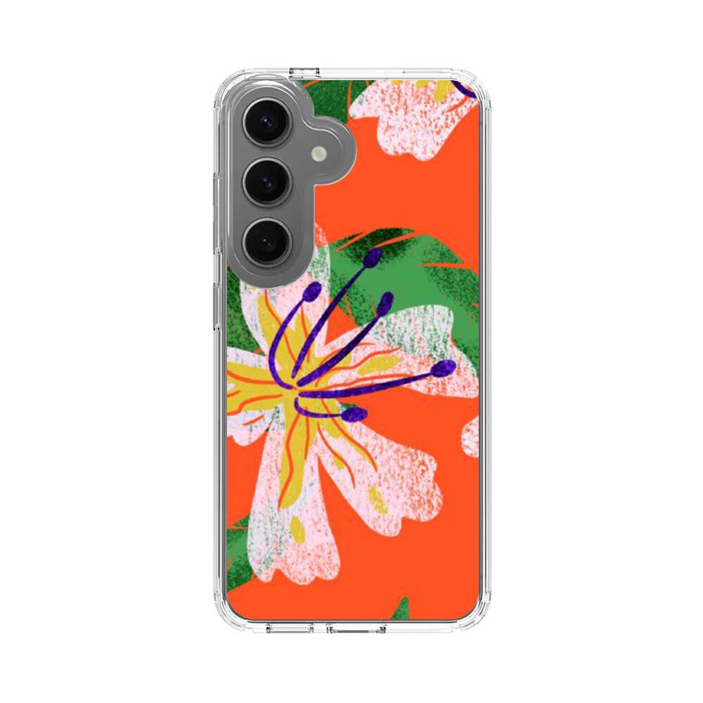 Retro Orchideen Samsung Galaxy S25 Silikon Hülle● Sehr robust & langlebig