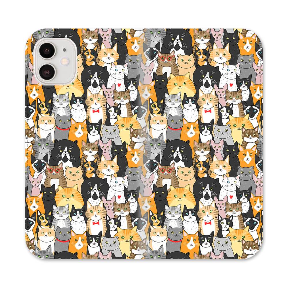 Katzen Gruppe Cartoon Illustration Apple iPhone 12 Flip Case● Seitlich klappbar