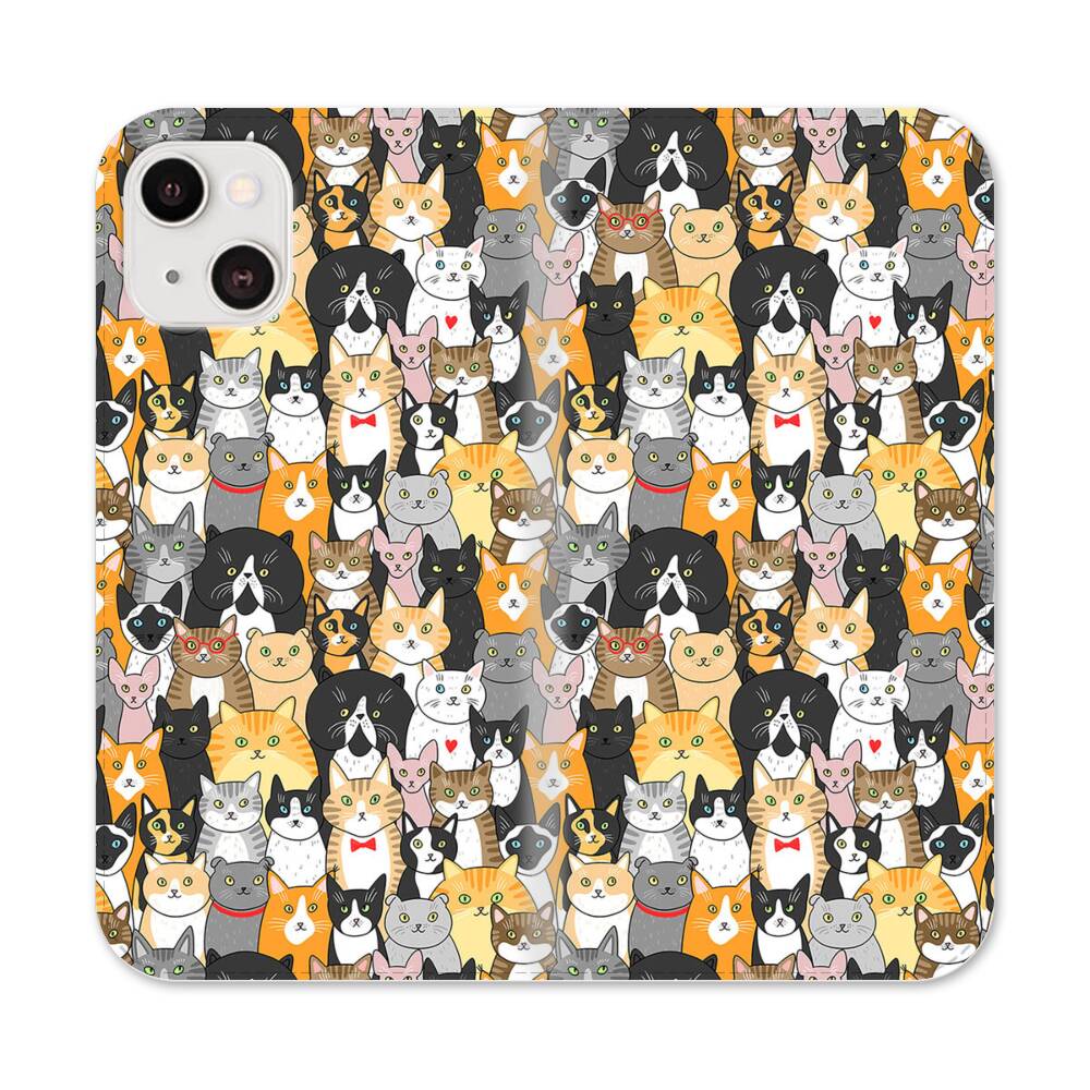 Katzen Gruppe Cartoon Illustration Apple iPhone 13 Mini Flip Case● Seitlich klappbar