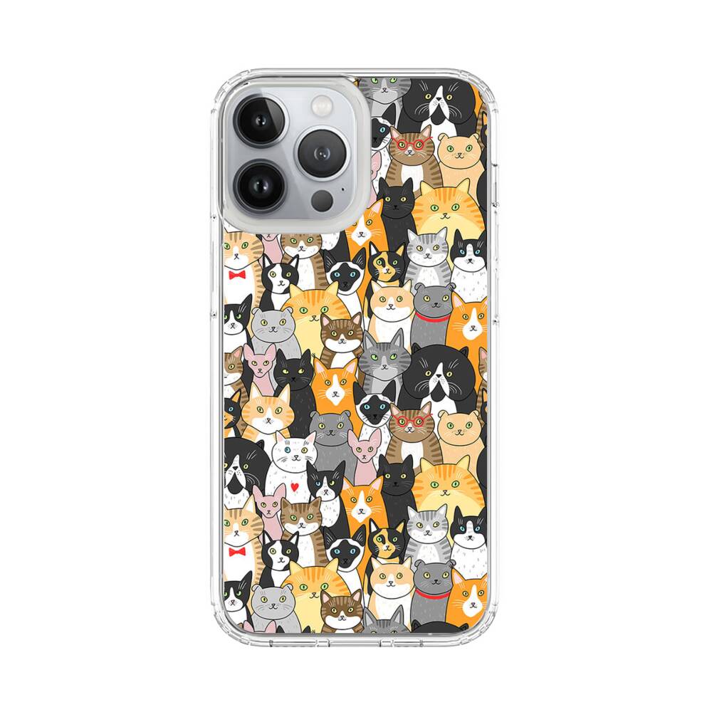 Katzen Gruppe Cartoon Illustration Apple iPhone 13 Pro Max Silikon Hülle● Sehr robust & langlebig