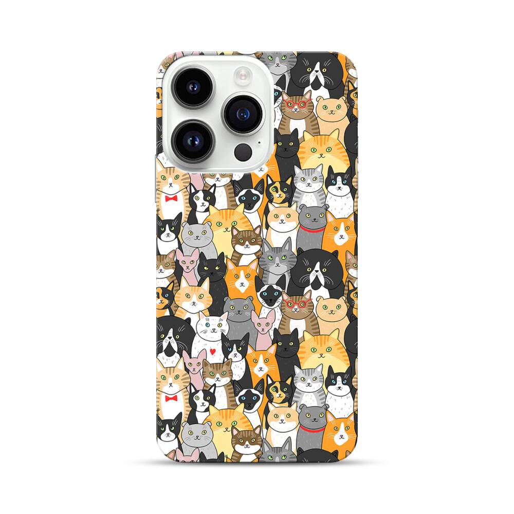 Katzen Gruppe Cartoon Illustration Apple iPhone 14 Pro Hülle● Rundum bedruckbar