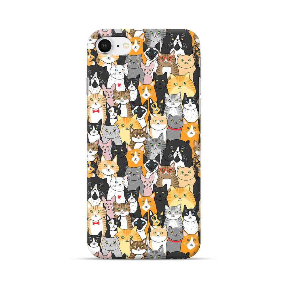 Katzen Gruppe Cartoon Illustration Apple iPhone SE (2020) Hülle● Rundum bedruckbar