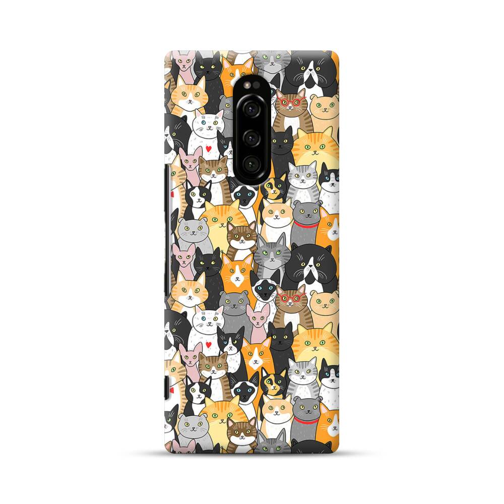 Katzen Gruppe Cartoon Illustration Sony Xperia 1 Hülle● Rundum bedruckbar