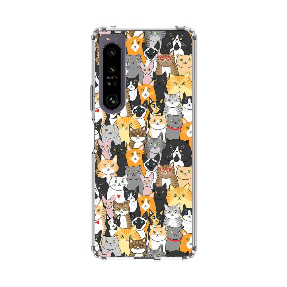 Katzen Gruppe Cartoon Illustration Sony Xperia 1 IV Silikon Hülle● Sehr robust & langlebig