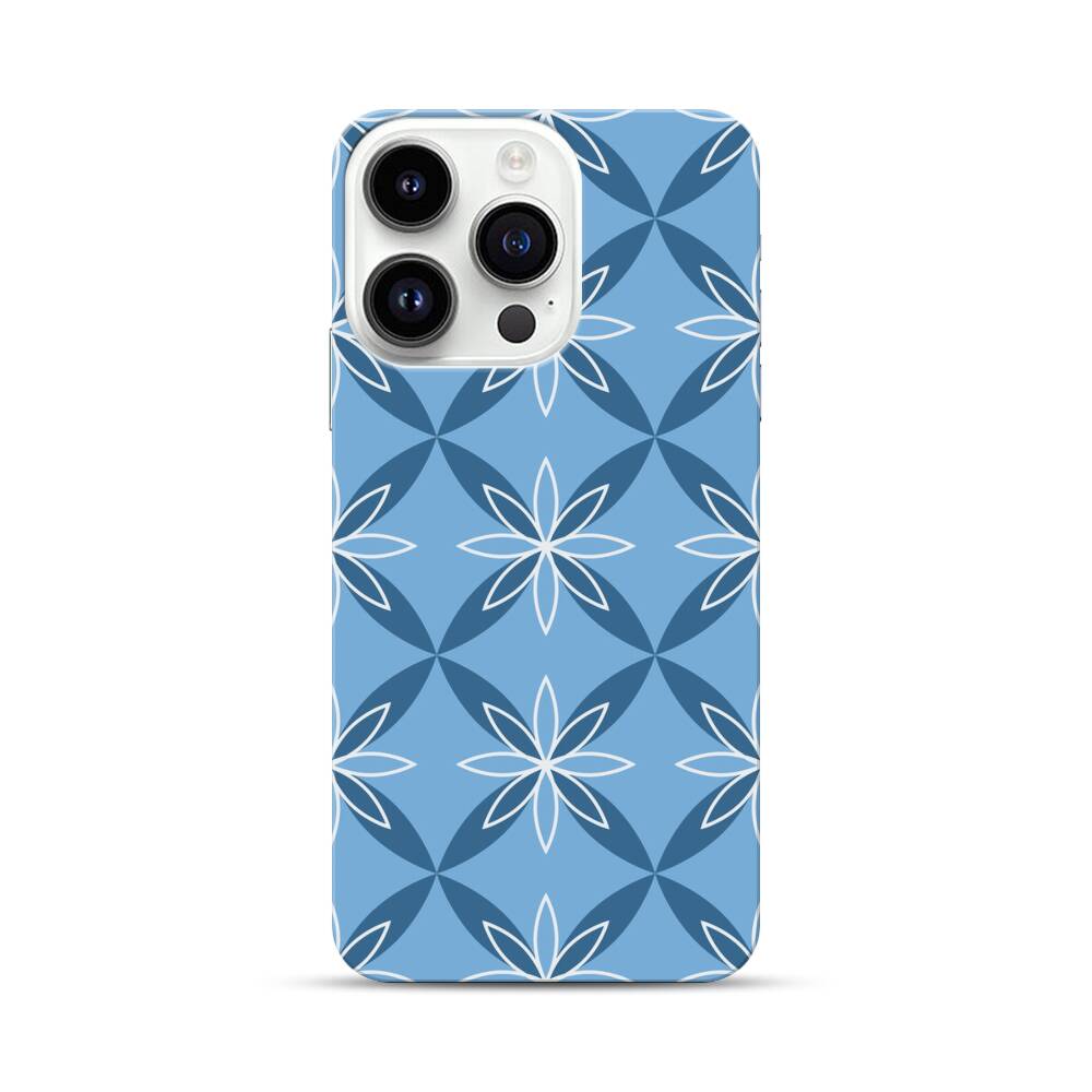Indigo Blumen Muster Apple iPhone 14 Pro Hülle● Rundum bedruckbar
