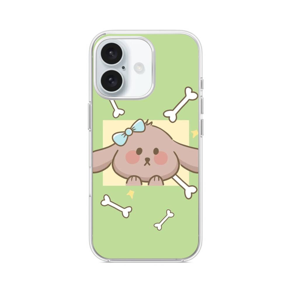 Comic Hund und Knochen iPhone 16 MagSafe‑kompatible Silikonhülle mit Kamera‑Kickstand● Sehr robust & langlebig