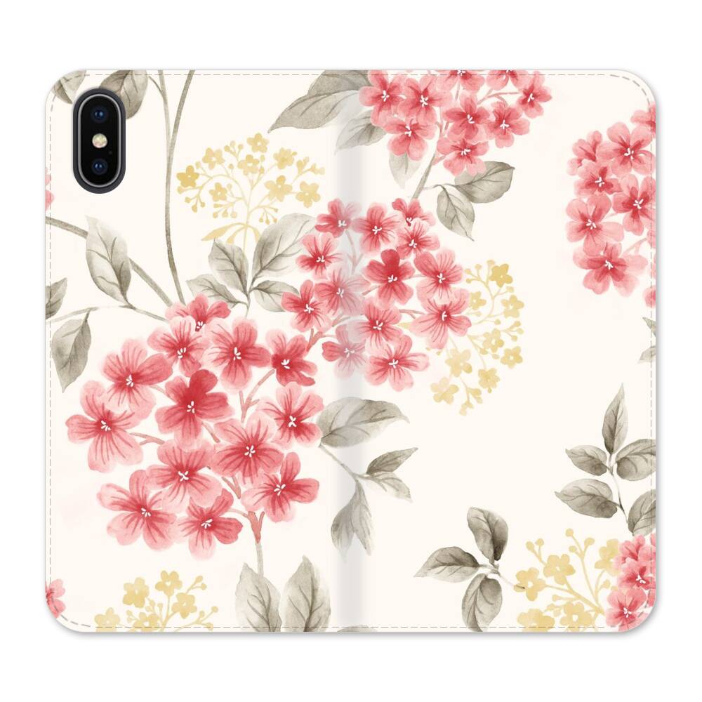 Pinke Blumen iPhone XS Wallet Leder Hülle● Seitlich klappbar