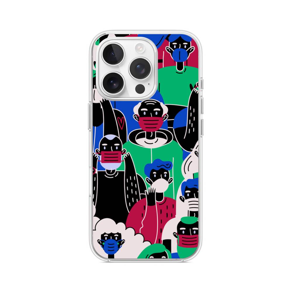 Pandemie Welt iPhone 15 Pro MagSafe‑kompatible Silikonhülle mit Kamera‑Kickstand● Sehr robust & langlebig