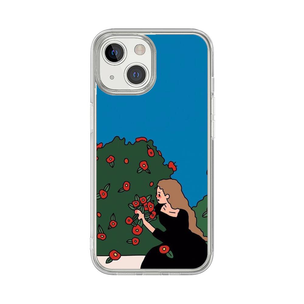 Süßes Mädchen mit Rosen Apple iPhone 13 Mini Silikon Hülle● Sehr robust & langlebig