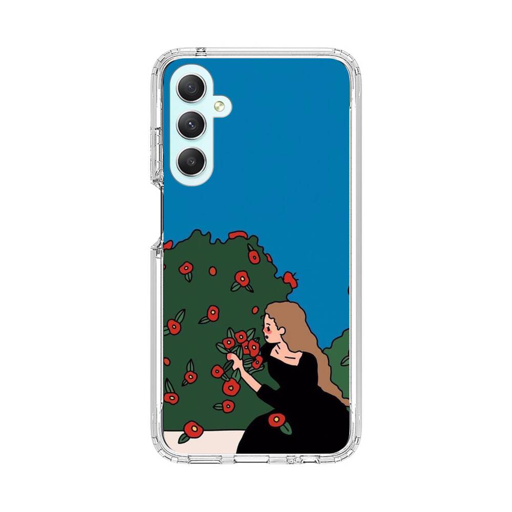 Süßes Mädchen mit Rosen Samsung Galaxy A34 Silikon Hülle● Sehr robust & langlebig