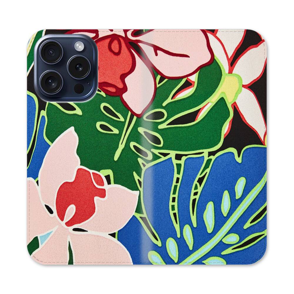 Retro Tropische Blumen Apple iPhone 15 Pro Flip Case● Seitlich klappbar