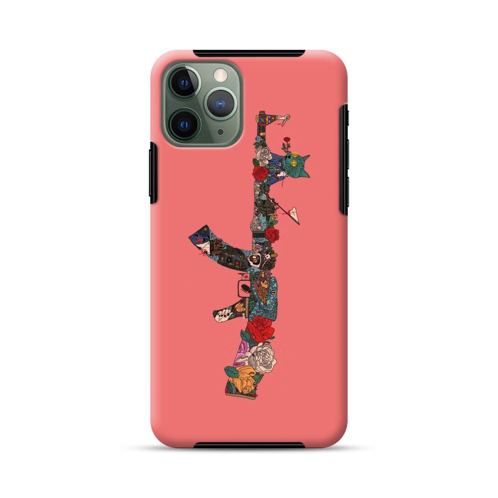 Pistole mit Blume Apple iPhone 11 Pro Max Hybrid Case● Rundum bedruckbar
