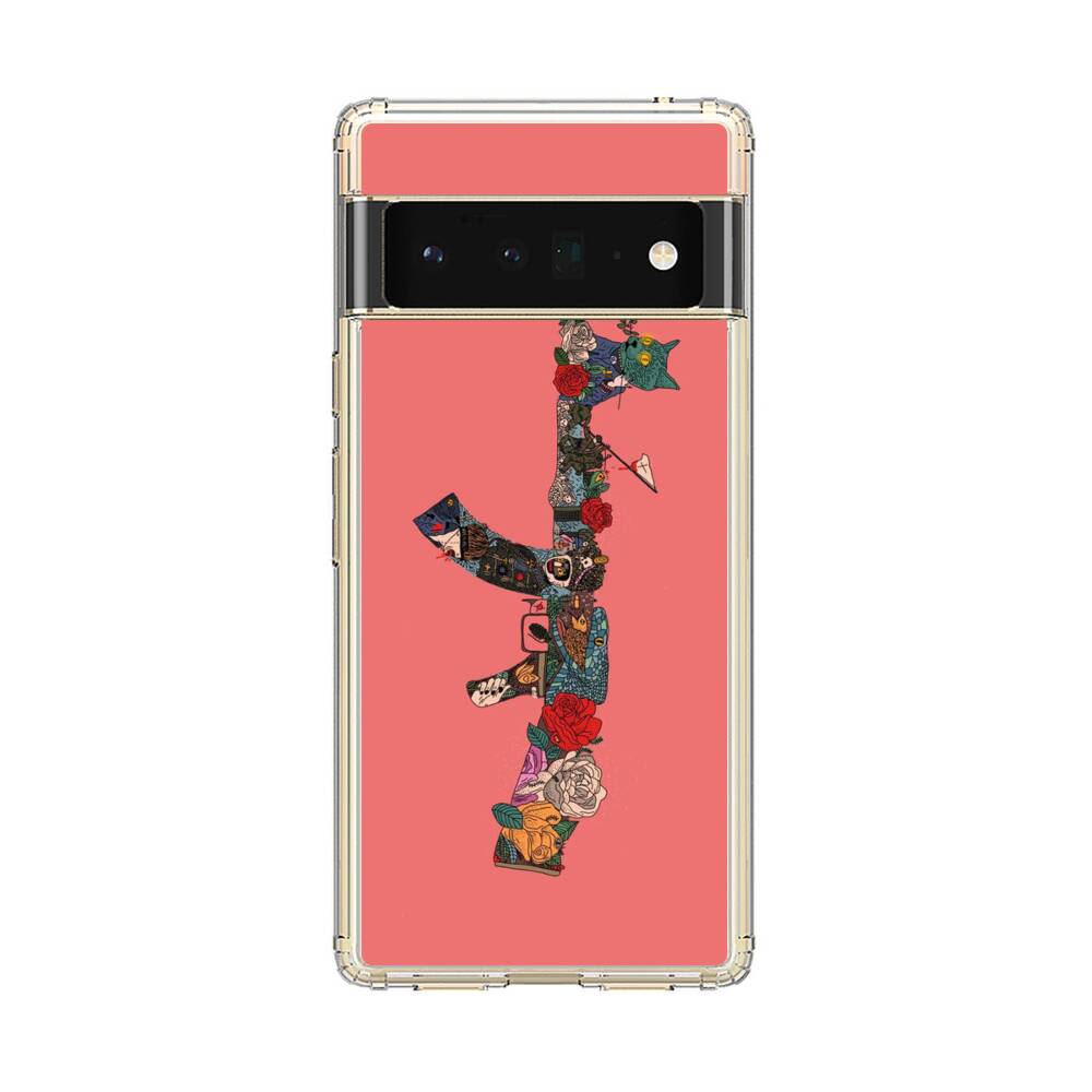 Pistole mit Blume Google Pixel 6 Pro Silikon Hülle● Sehr robust & langlebig