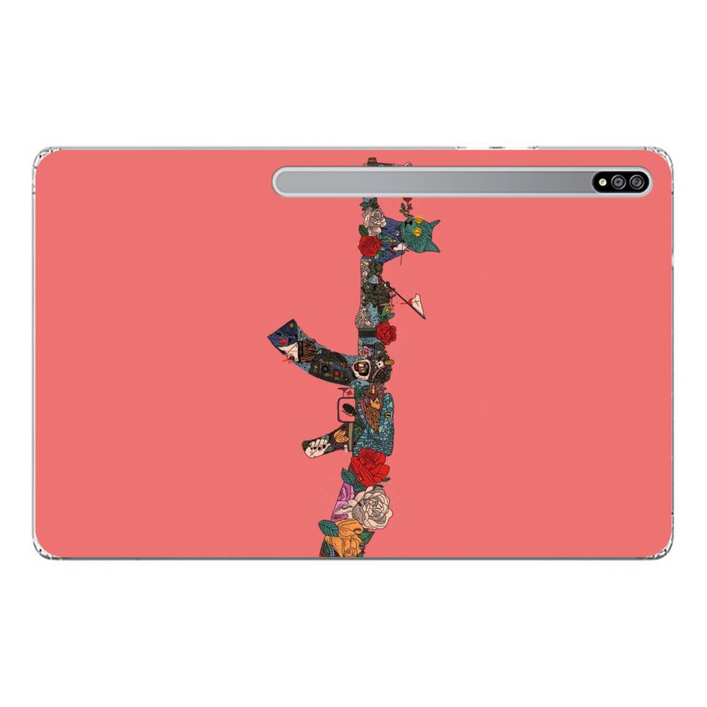Pistole mit Blume Samsung Galaxy Tab S8 Ultra Silikon Hülle● Sehr robust & langlebig