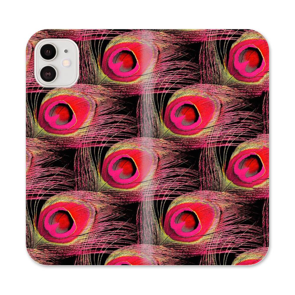 Pinke Pfauenfeder Apple iPhone 12 Flip Case● Seitlich klappbar
