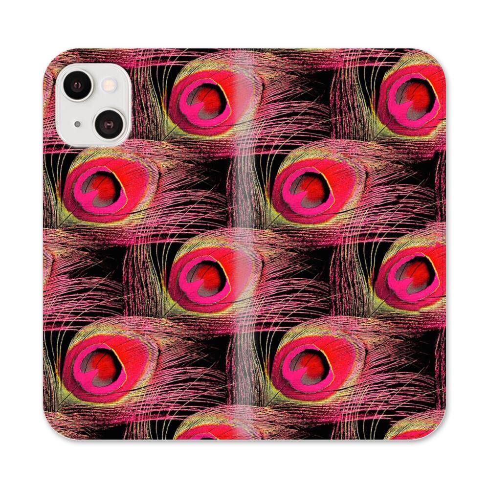 Pinke Pfauenfeder Apple iPhone 13 Flip Case● Seitlich klappbar
