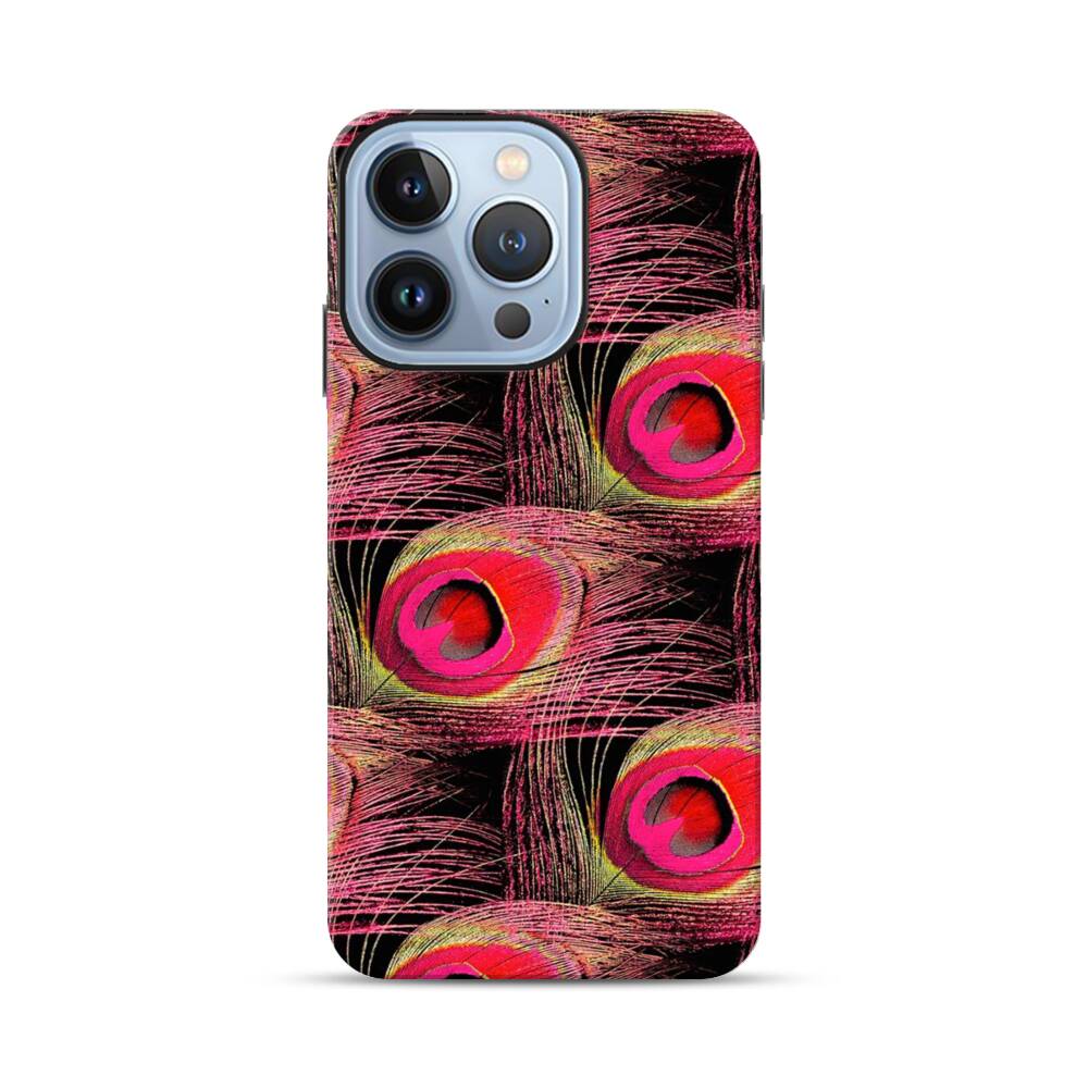 Pinke Pfauenfeder Apple iPhone 13 Pro Hybrid Case● Rundum bedruckbar