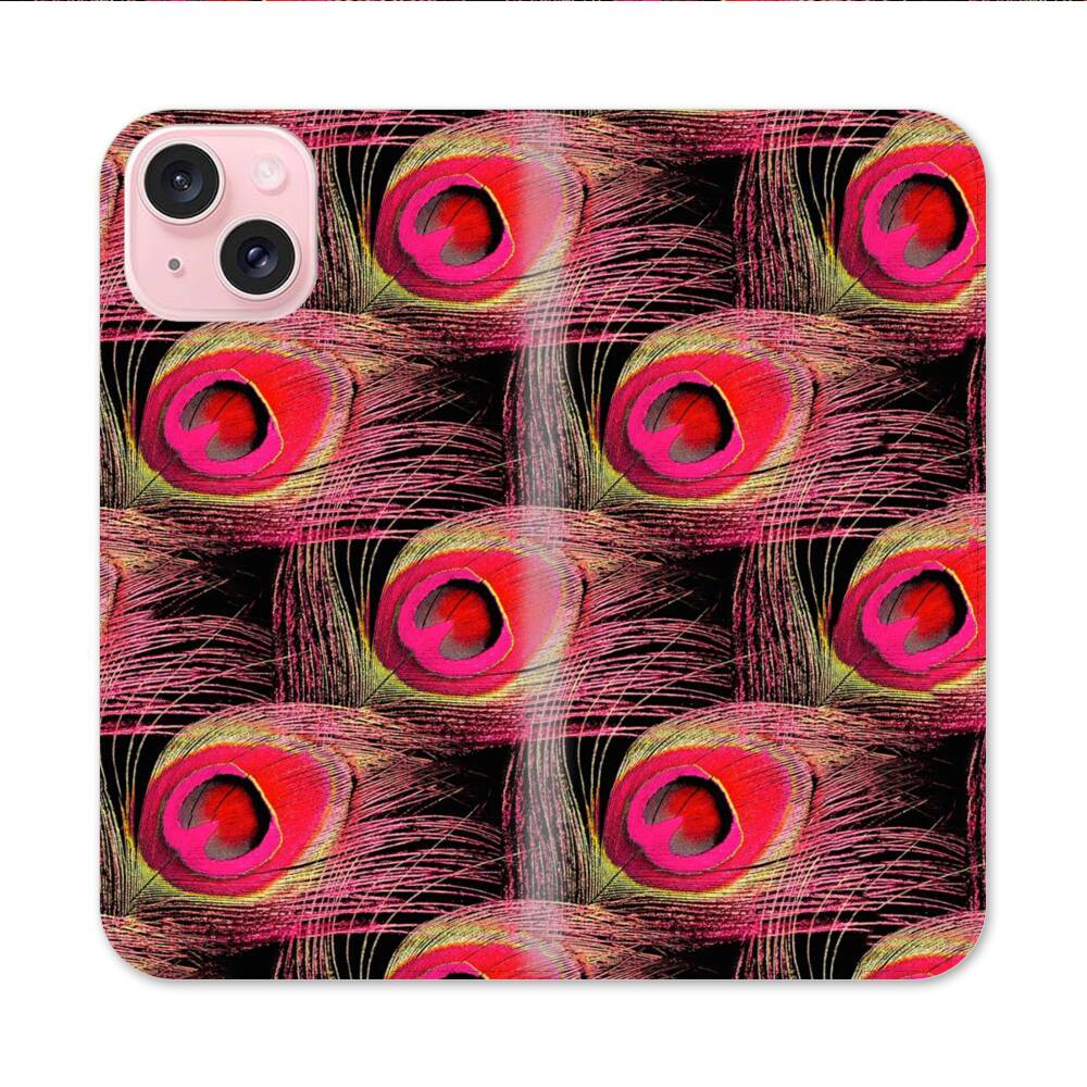 Pinke Pfauenfeder Apple iPhone 15 Flip Case● Seitlich klappbar