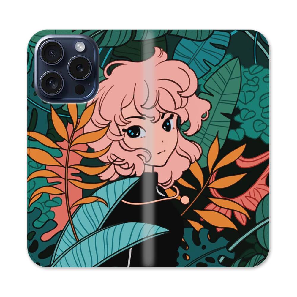 Cartoon Wald Mädchen Apple iPhone 15 Pro Flip Case● Seitlich klappbar
