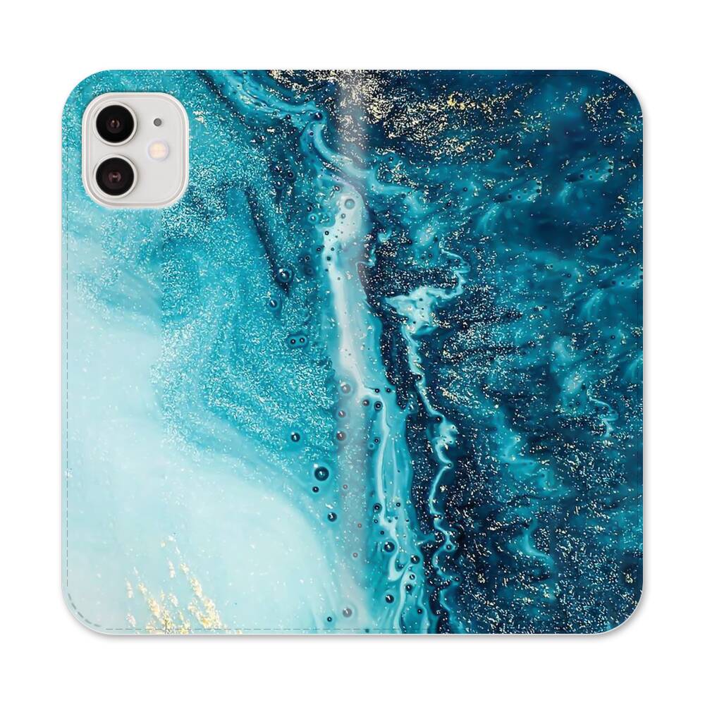 Türkisgoldener Marmor Apple iPhone 12 Flip Case● Seitlich klappbar
