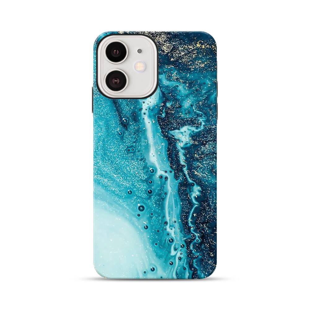 Türkisgoldener Marmor Apple iPhone 12 Hybrid Case● Rundum bedruckbar