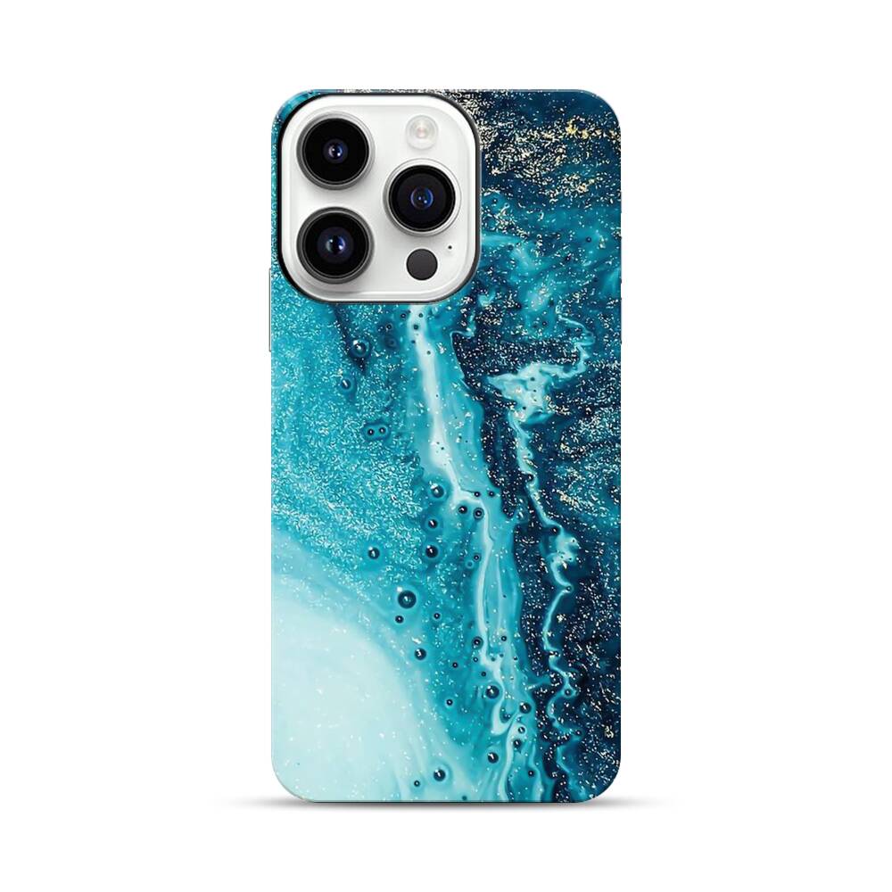 Türkisgoldener Marmor Apple iPhone 14 Pro Hybrid Case● Rundum bedruckbar