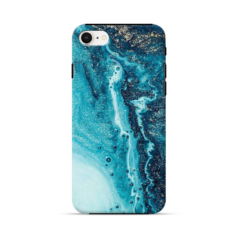 Türkisgoldener Marmor Apple iPhone SE (2020) Hybrid Case● Rundum bedruckbar