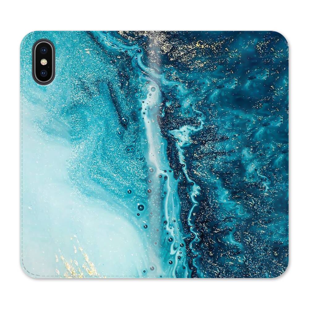 Türkisgoldener Marmor iPhone XS Wallet Leder Hülle● Seitlich klappbar