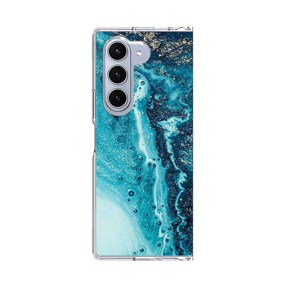 Türkisgoldener Marmor Samsung Galaxy Z Fold 6 Silikon Hülle● Sehr robust & langlebig