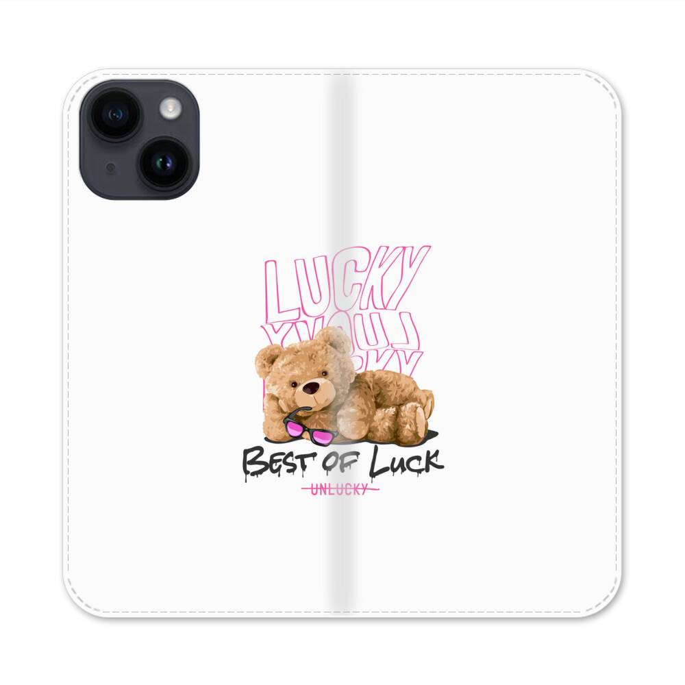 Glückliche Teddy Apple iPhone 14 Flip Case● Seitlich klappbar