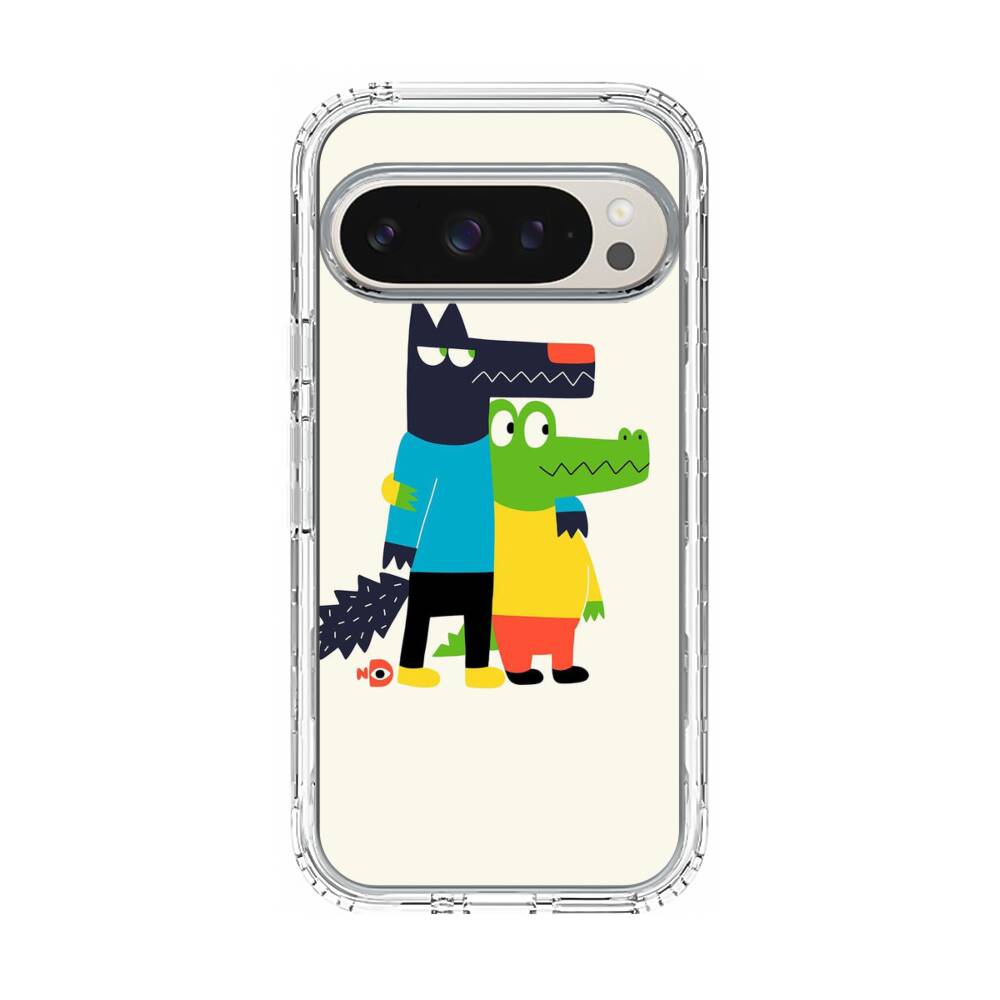 Cartoon Wolf und Krokodilleder Google Pixel 10 Pro Silikon Hülle● Sehr robust & langlebig