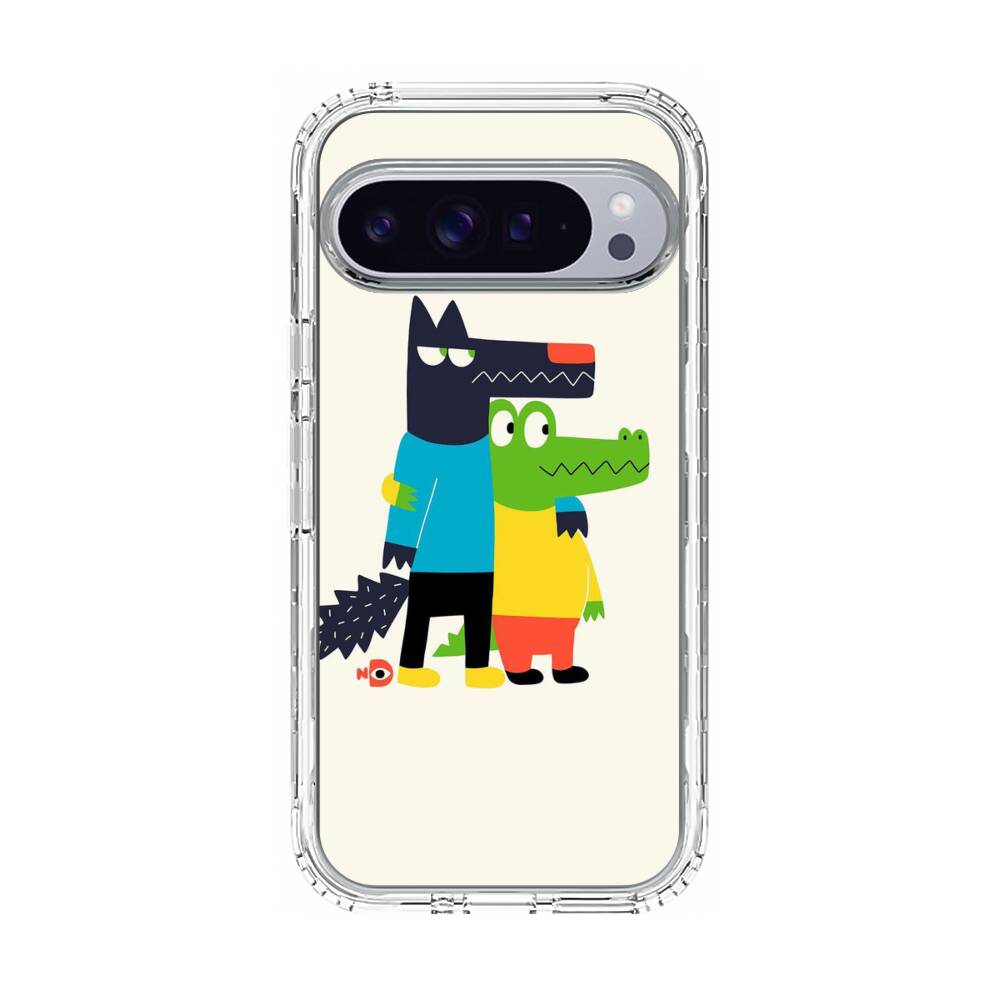 Cartoon Wolf und Krokodilleder Google Pixel 10 Pro XL Silikon Hülle● Sehr robust & langlebig