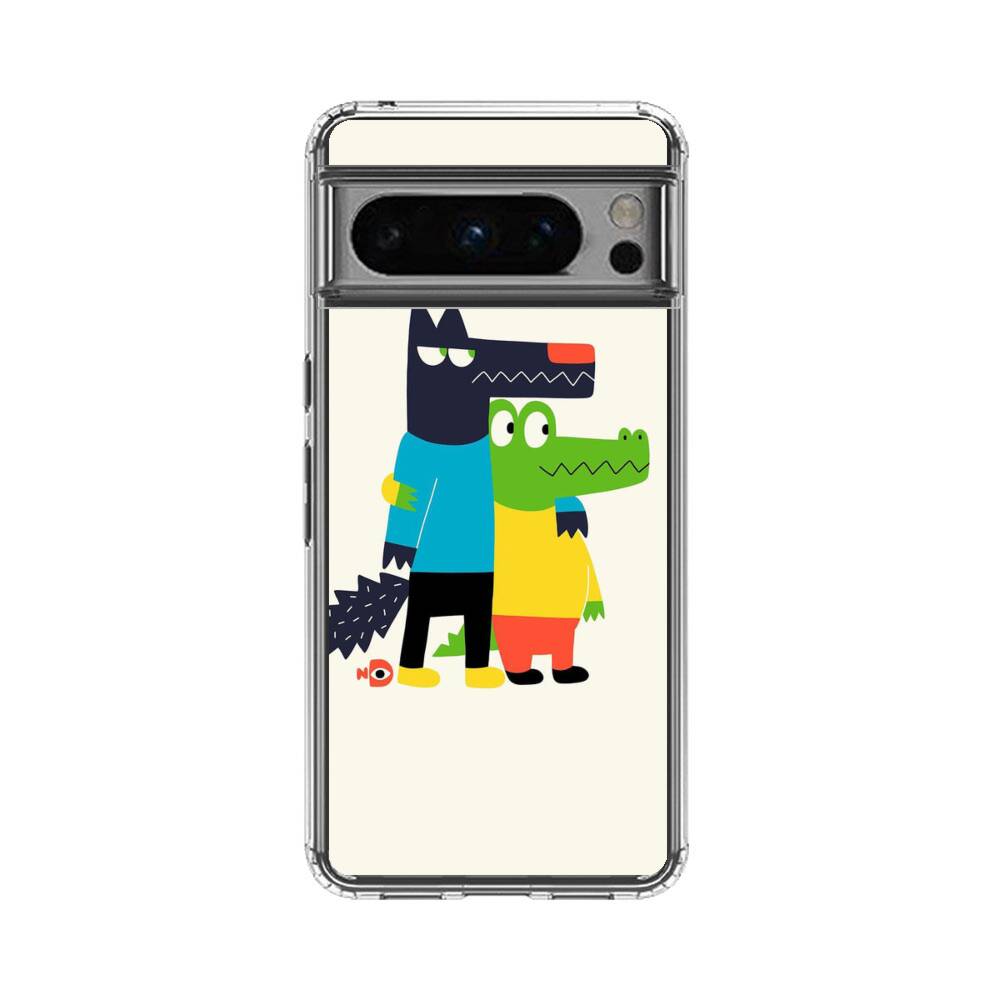 Cartoon Wolf und Krokodilleder Google Pixel 8 Pro Silikon Hülle● Sehr robust & langlebig