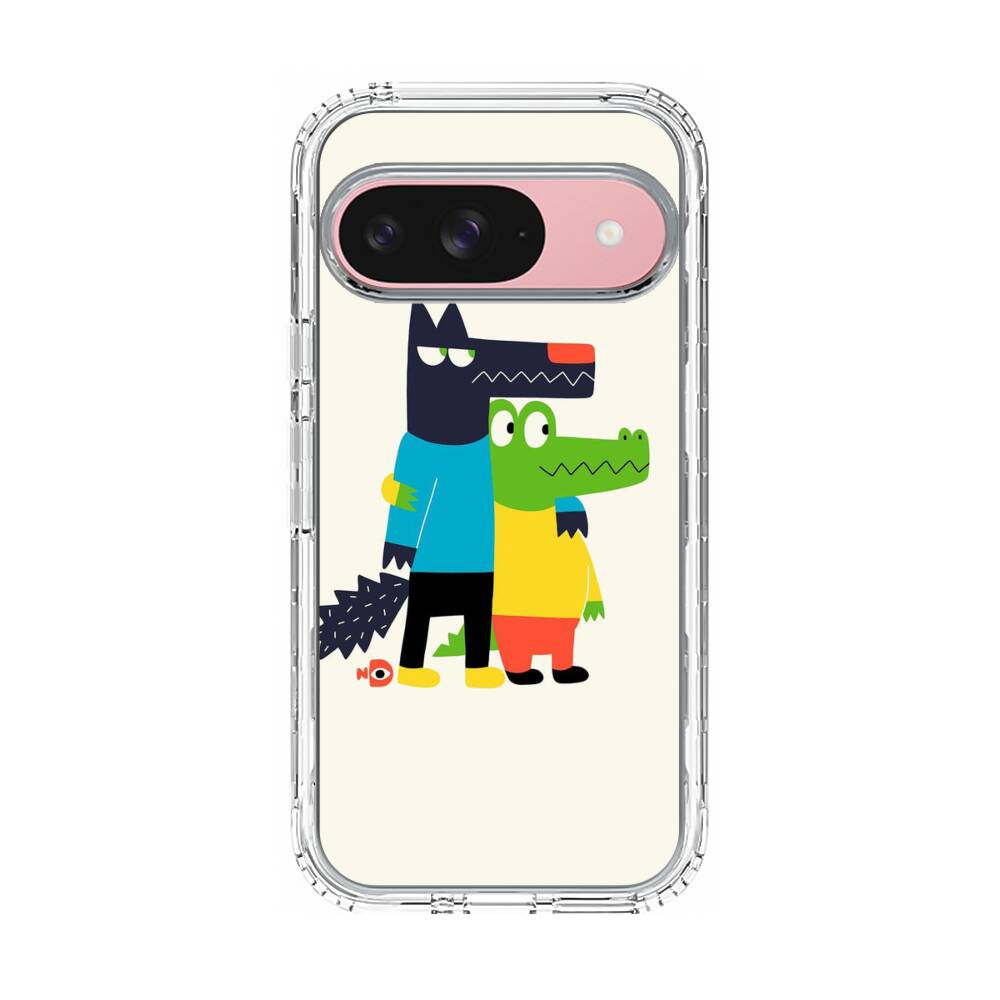 Cartoon Wolf und Krokodilleder Google Pixel 9 Silikon Hülle● Sehr robust & langlebig