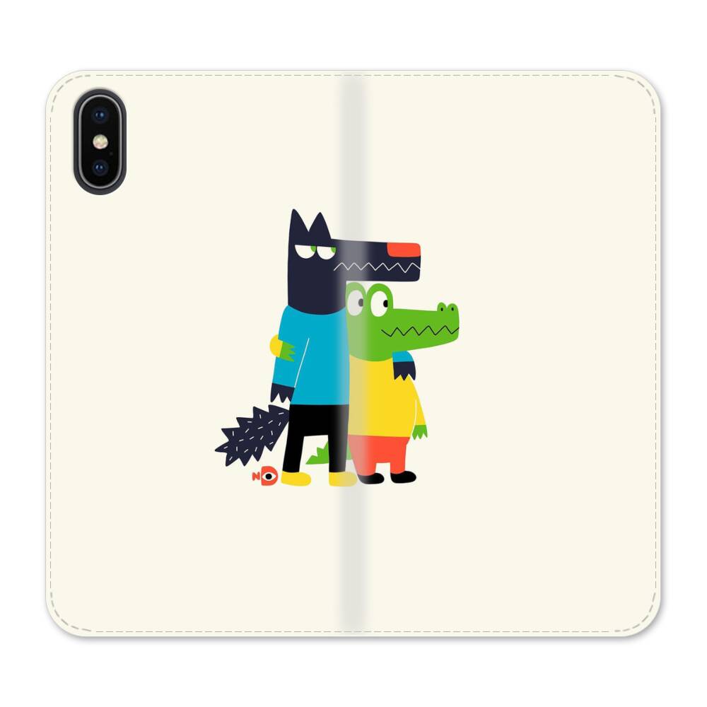 Cartoon Wolf und Krokodilleder iPhone XS Max Wallet Leder Hülle● Seitlich klappbar