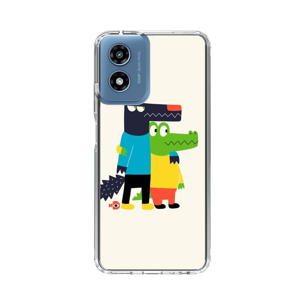 Cartoon Wolf und Krokodilleder Motorola Moto G Play (2024) Silikon Hülle● Sehr robust & langlebig