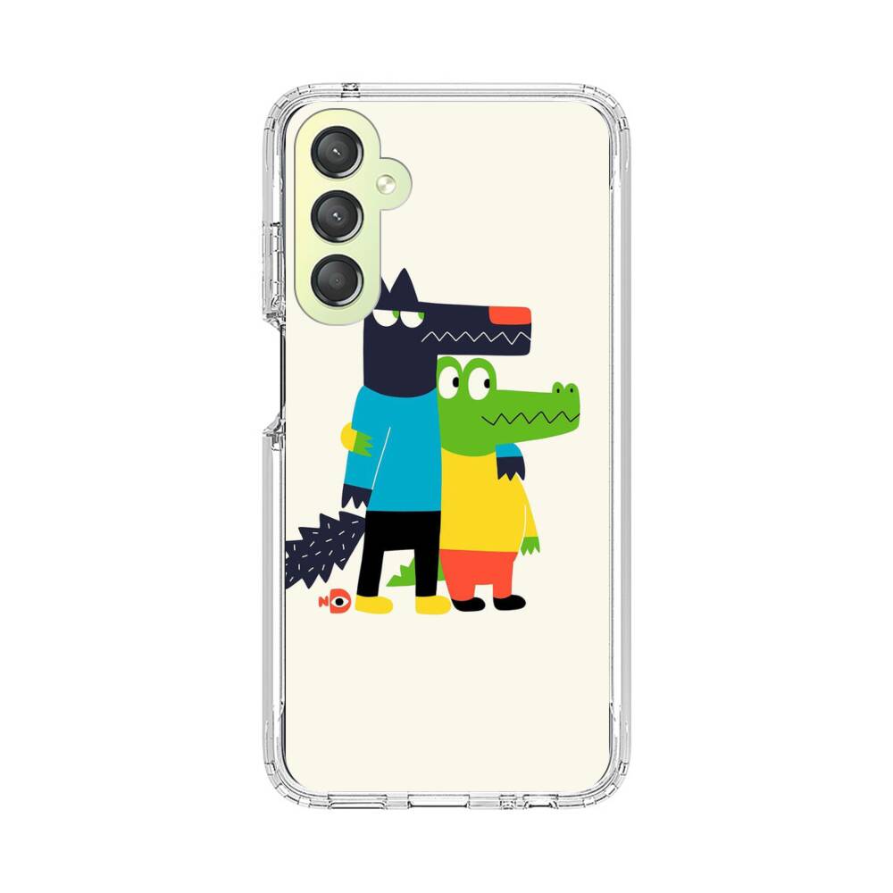 Cartoon Wolf und Krokodilleder Samsung Galaxy A24 4G Silikon Hülle● Sehr robust & langlebig