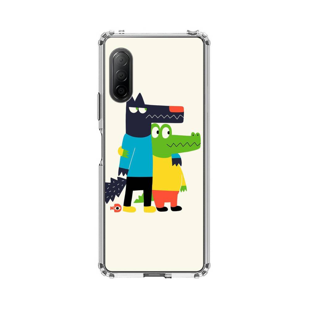 Cartoon Wolf und Krokodilleder Sony Xperia 10 II Silikon Hülle● Sehr robust & langlebig